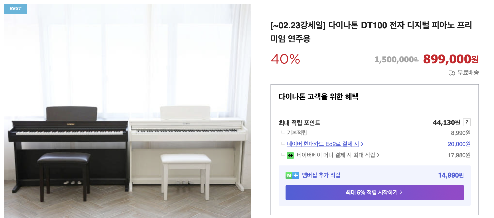 피아노 다리 별도구매이거나 페달과 헤드셋이 포함인지, 세트로 구매하면 더 저렴하기도 합니다.
