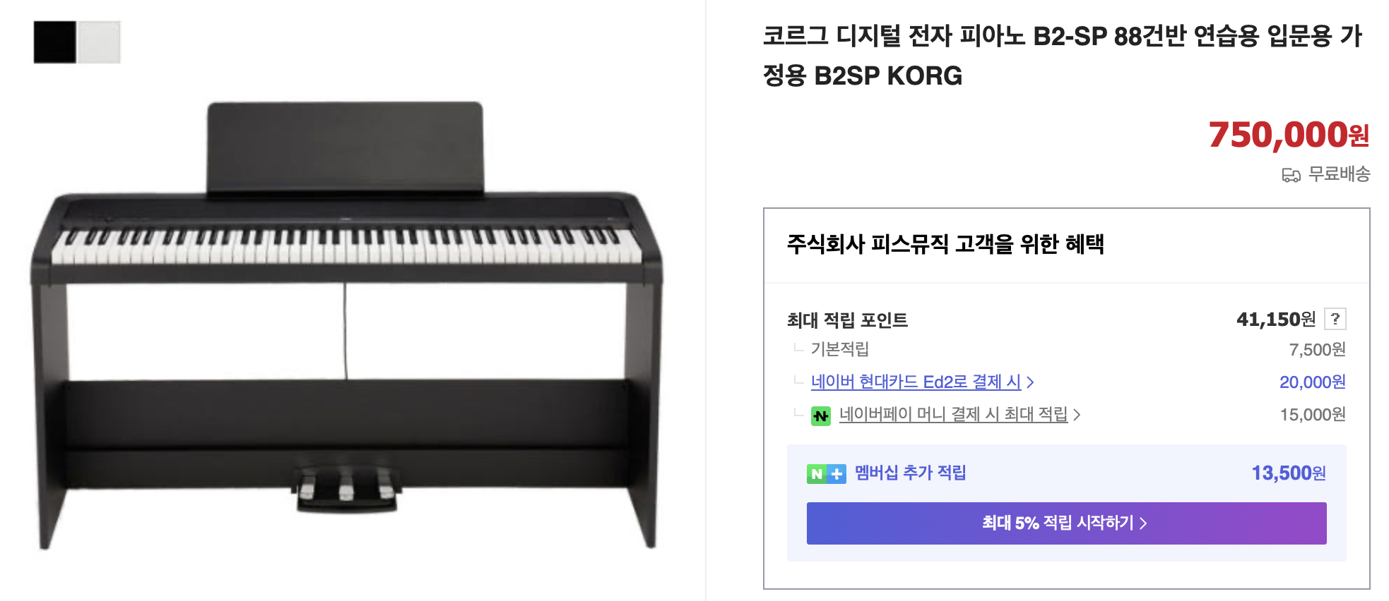 - 코르그 b2 : 음악 하시는 분들은 코르그 좋아하는데, 아마 생소한 분들도 계실 거 같아요. 입문용으로 추천하는 피아노입니다.